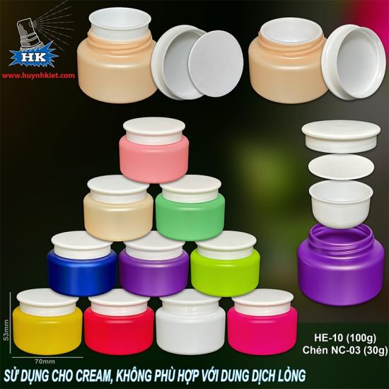 Bộ hũ HE-10 có chén lót 30g gồm: thân hũ, lót foam, chén lót 30g, nắp đậy